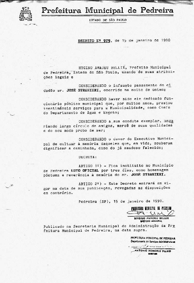 Ementa: Considerando o infausto passamento do cidadão Sr. José Stranieri, ocorrido na noite de ontem