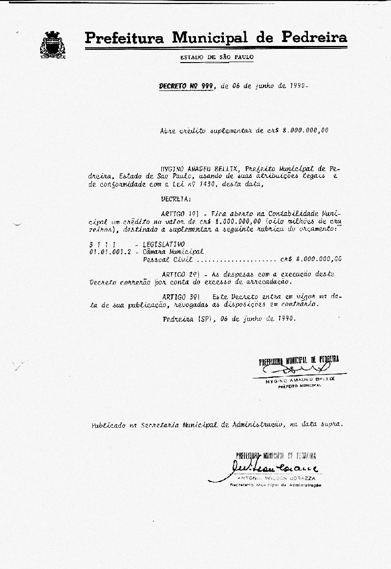 Ementa: Abre crédito suplementar de Cr$ 8.000.000,00