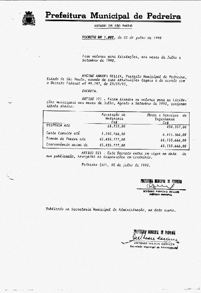 Ementa: Fixa valores para licitações, nos meses de julho a setembro de 1990