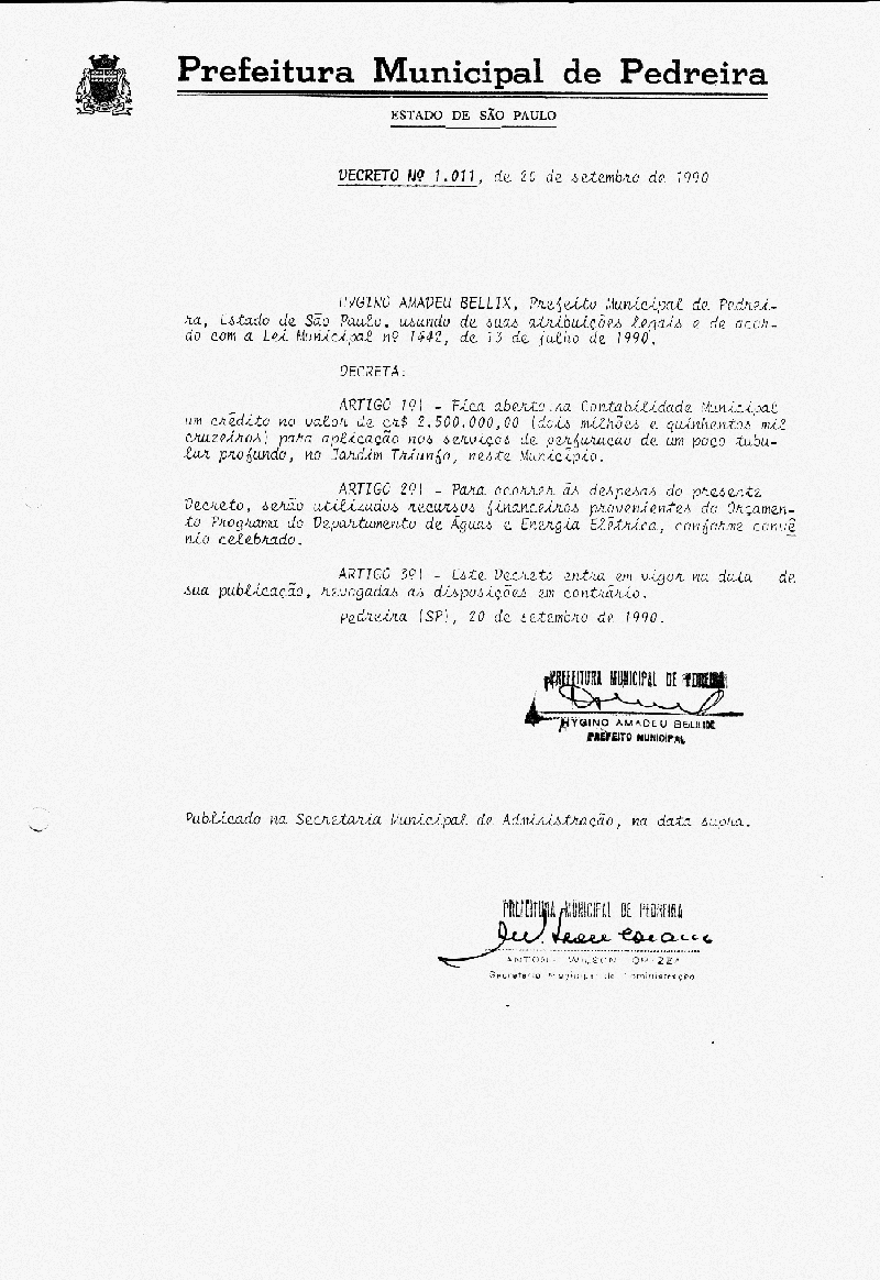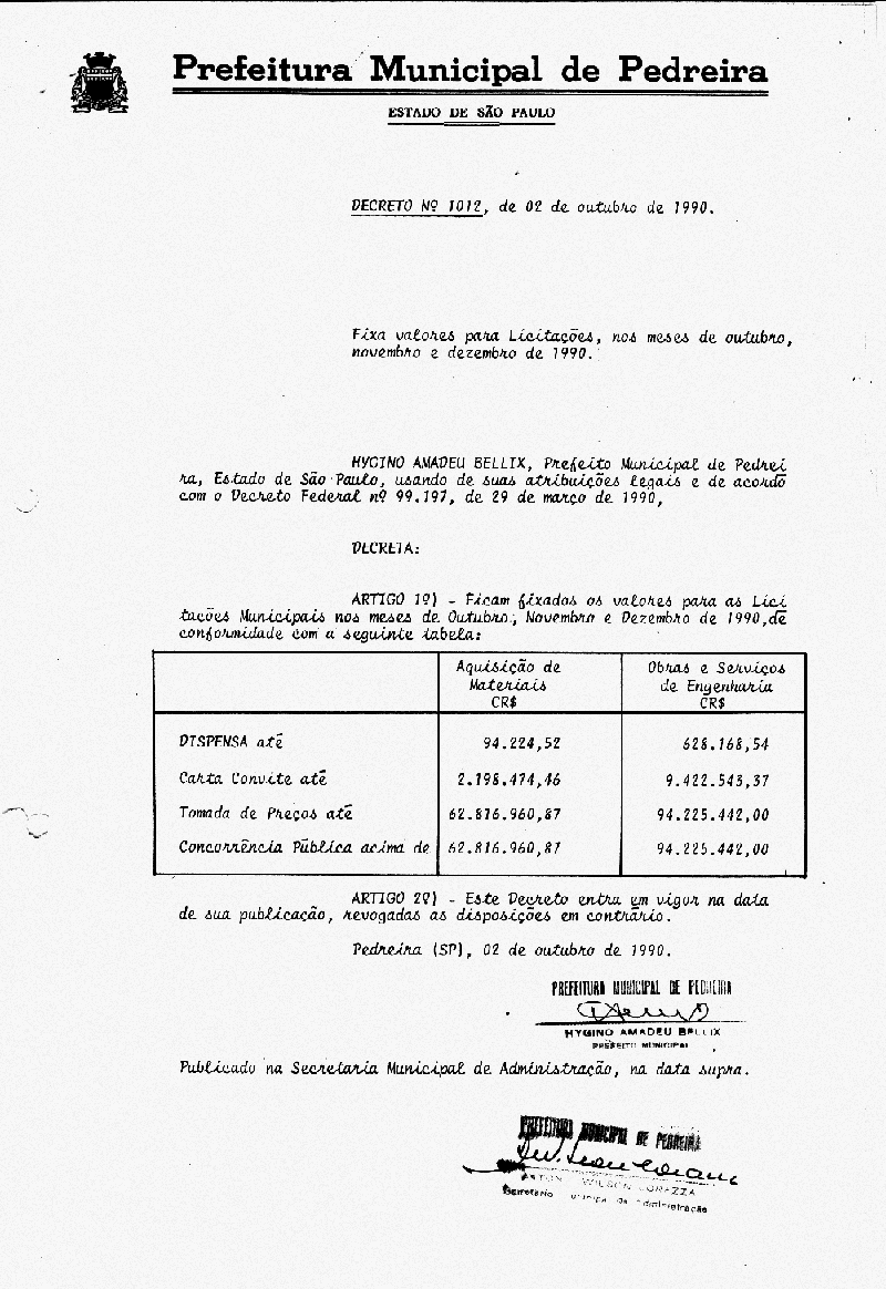 Ementa: Artigo 1° - Fica aberto na Contabilidade Municipal um crédito no valor de Cr$ 2.500.000,00 (dois milhões e quinhentos mil cruzeiros), destinados a suplementar as seguintes rubricas vigentes