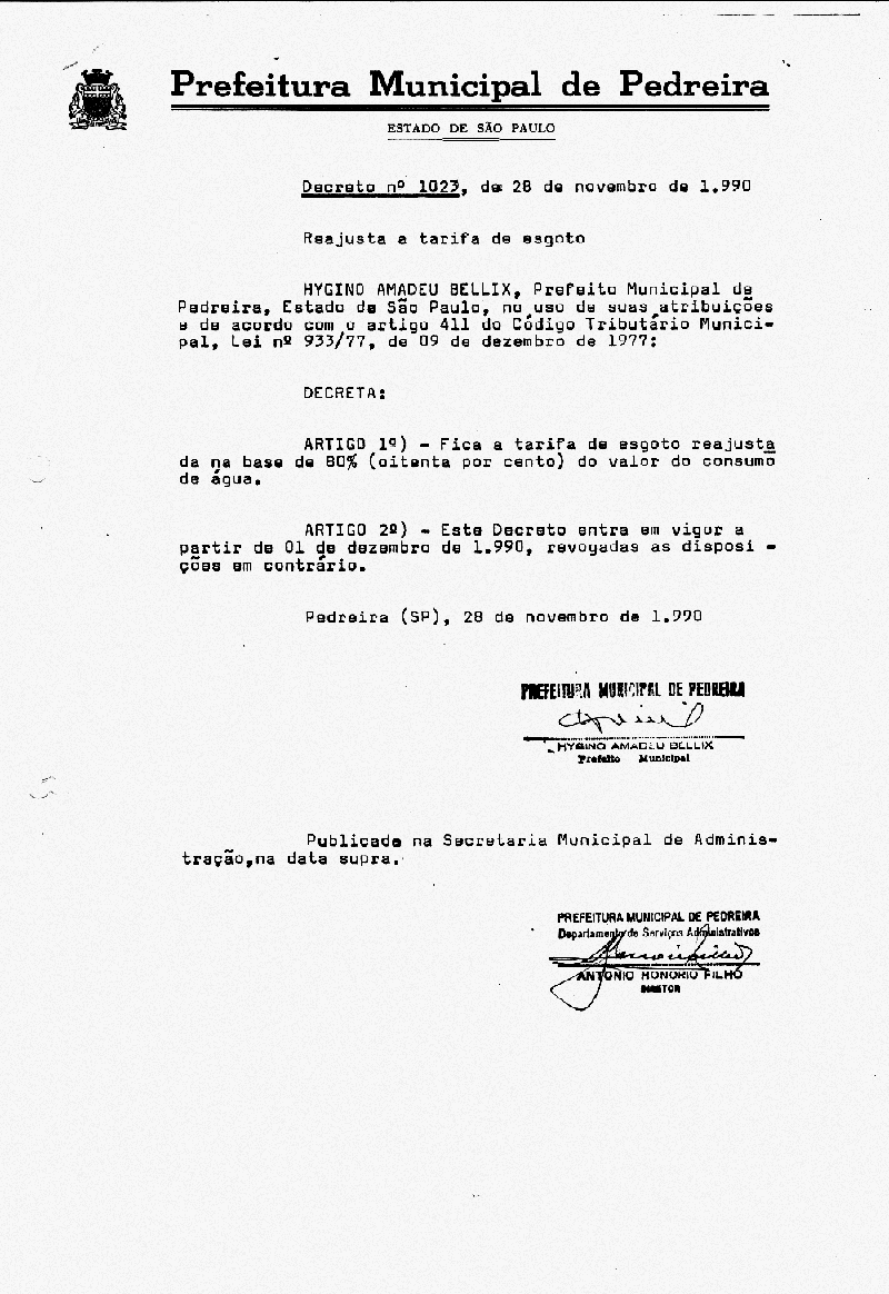 Ementa: Artigo 1° - Fica a tarifa de esgoto reajustada na base de 80% (oitenta por cento) do valor do consumo de água