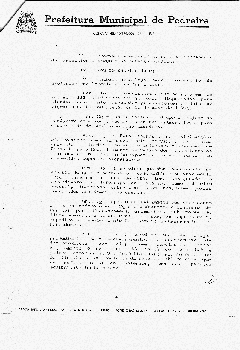 Ementa: Estabelece as normas gerais para enquadramento no plano de Classificação de empregos, e dá outras providências