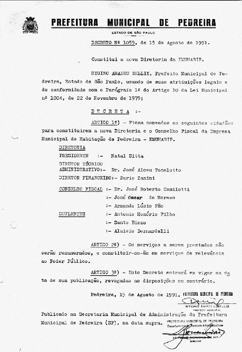 Ementa: Constitui a nova Diretoria da EMUHABIP