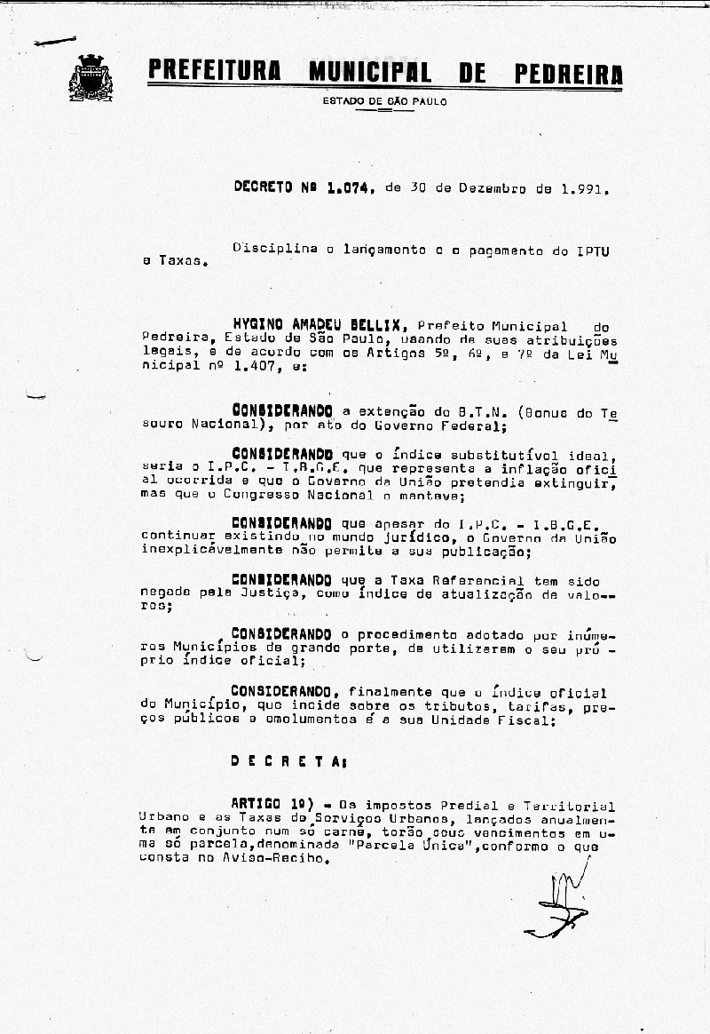 Decreto - N° 1074 de 30/12/1991
