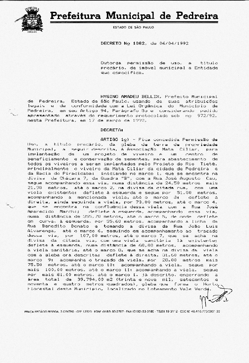 Decreto - N° 1082 de 06/04/1992