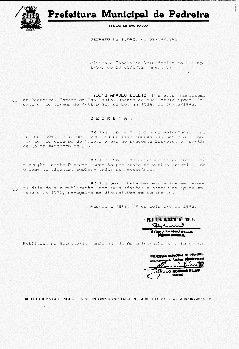 Decreto - N° 1092 de 08/09/1992