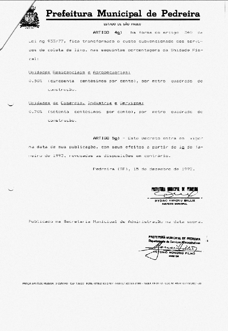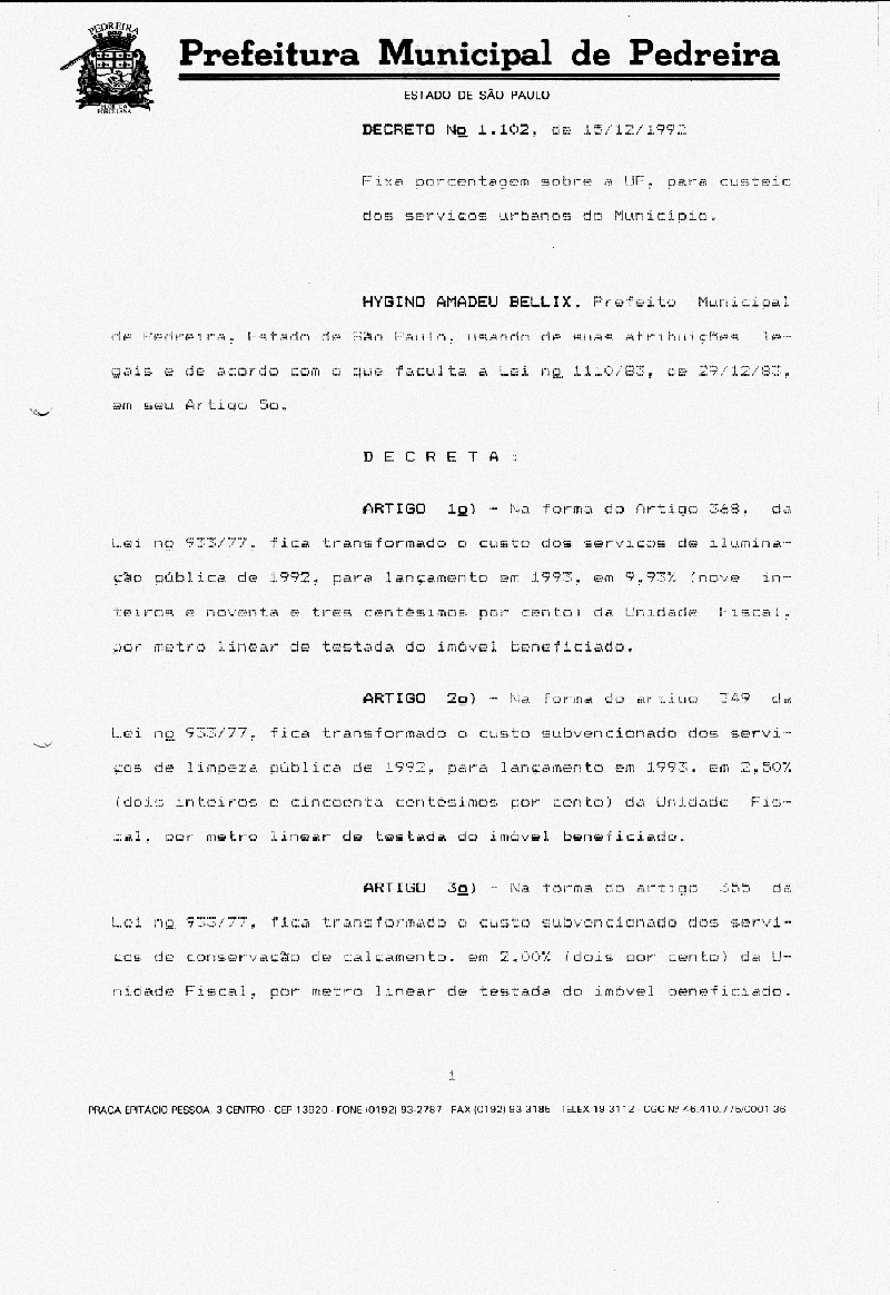 Ementa: Fixa porcentagem sobre a UF, para custeio dos serviços urbanos do Municipio