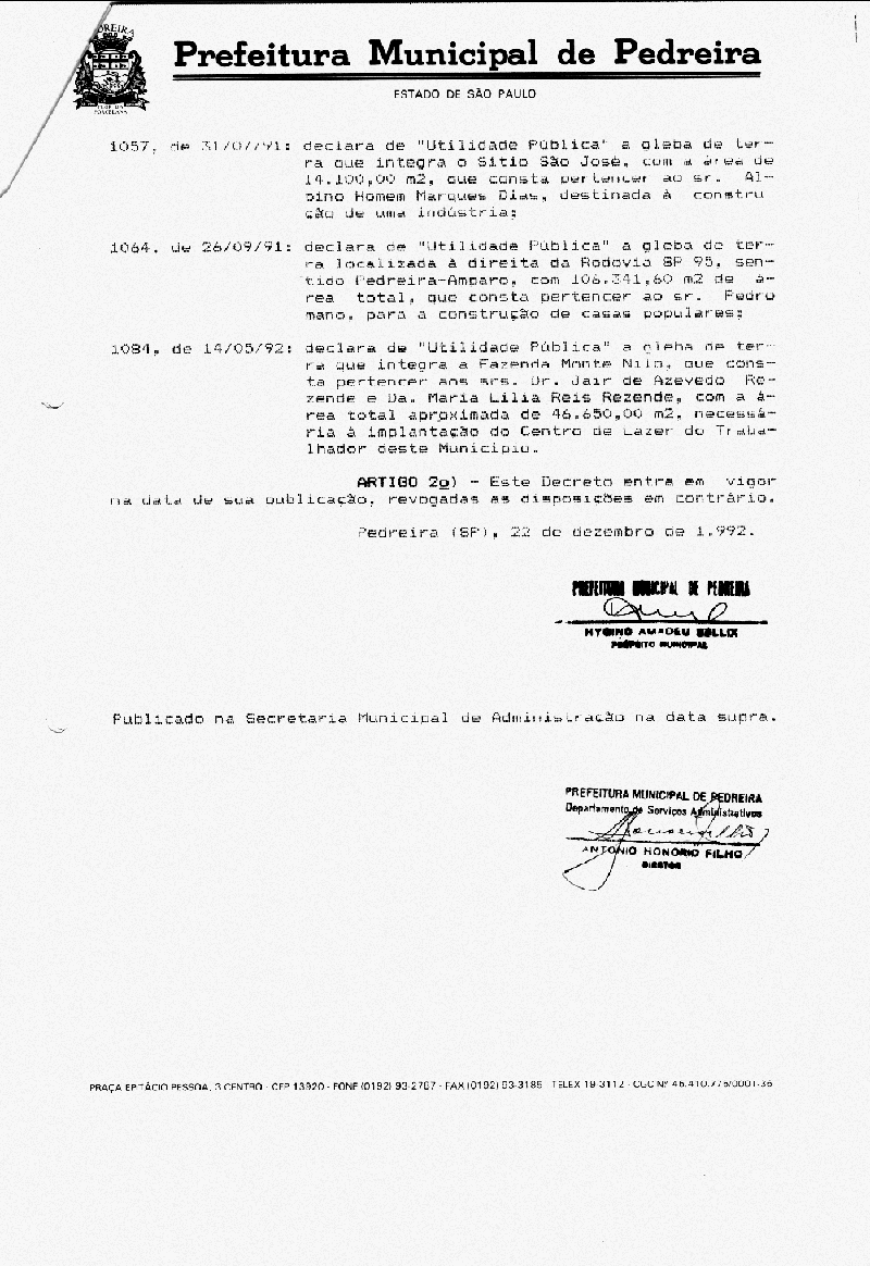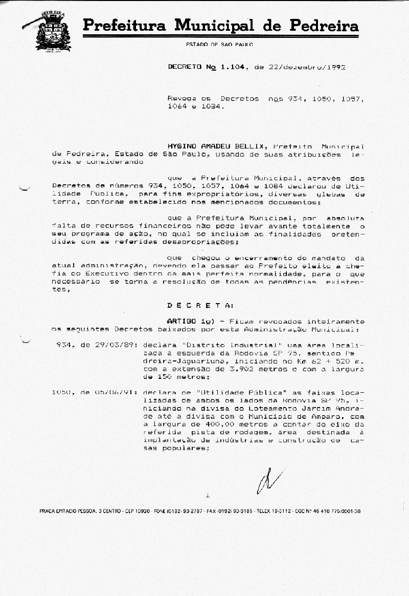Ementa: Revoga os decretos n°s 934, 1050, 1057, 1064 a 1084