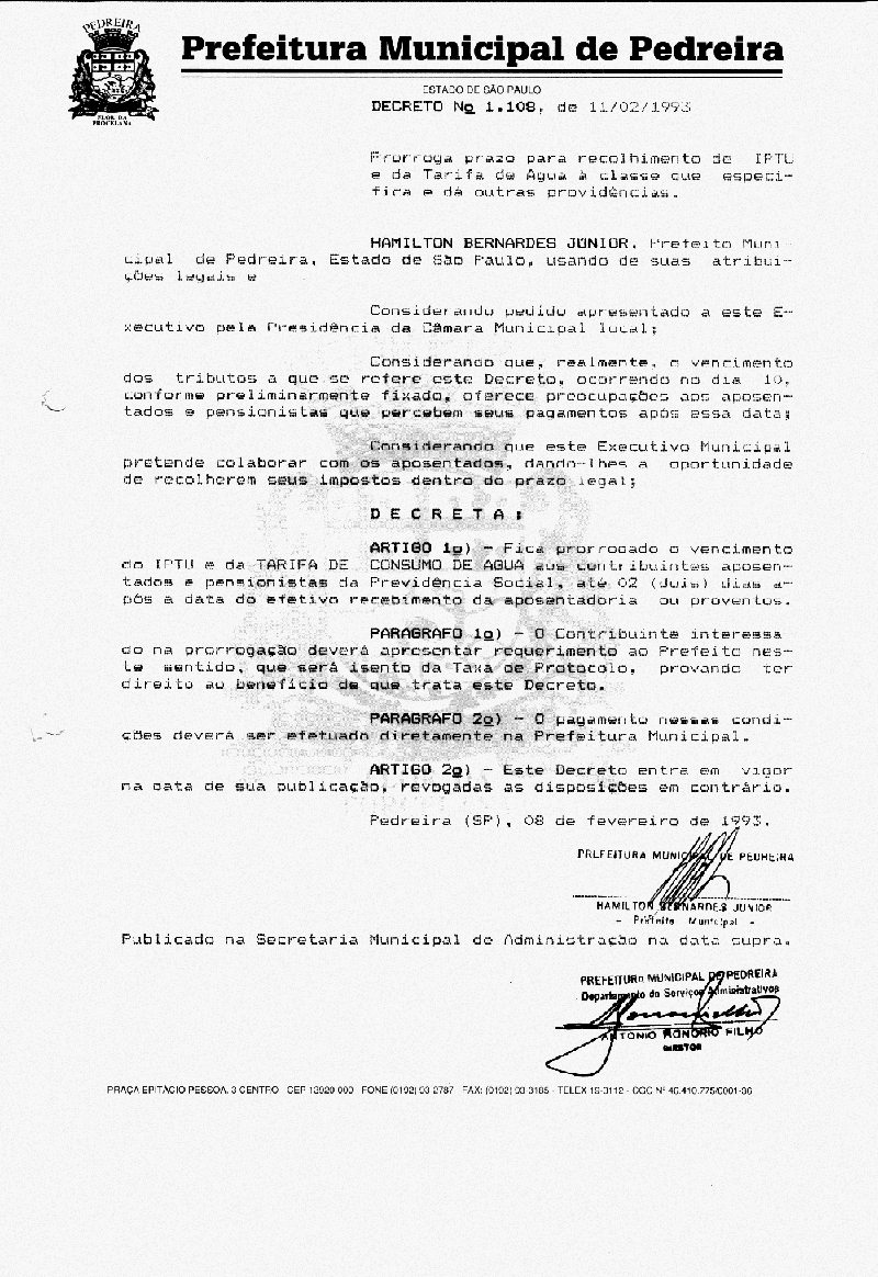 Ementa: Prorroga prazo para recolhimento de IPTU e da Tarifa de água à classe que especifica e dá outras providências