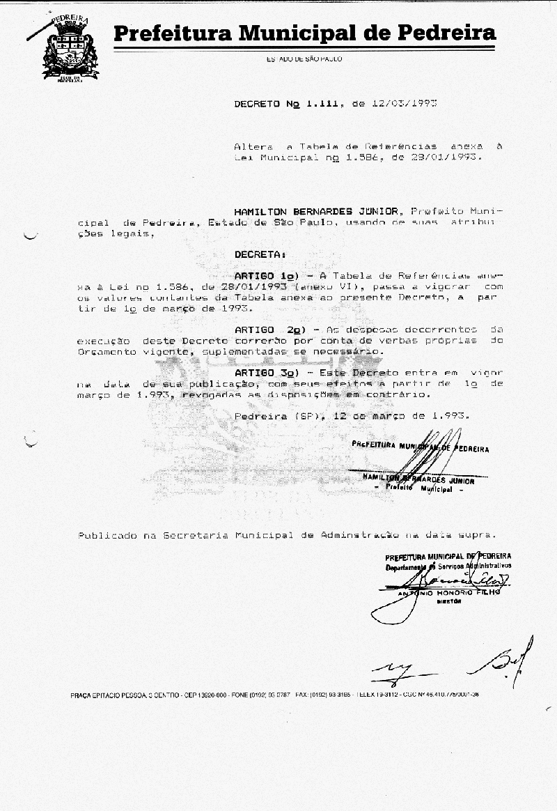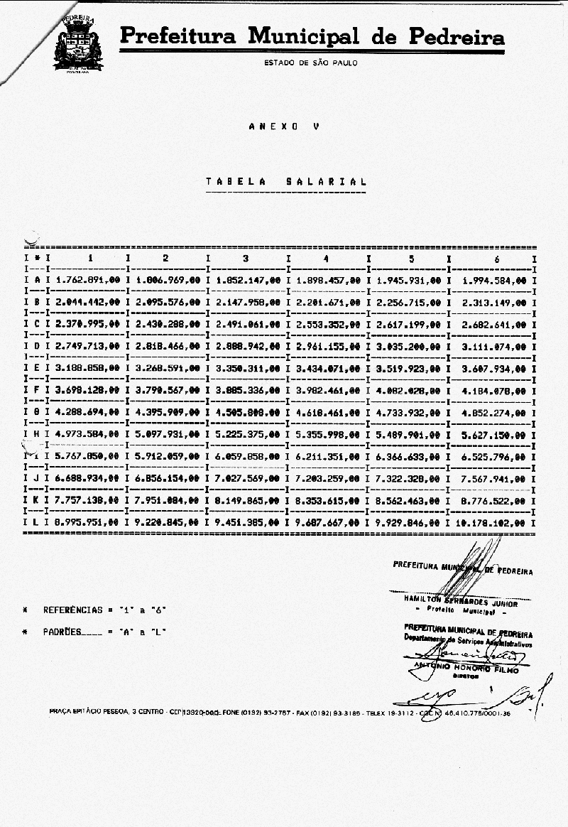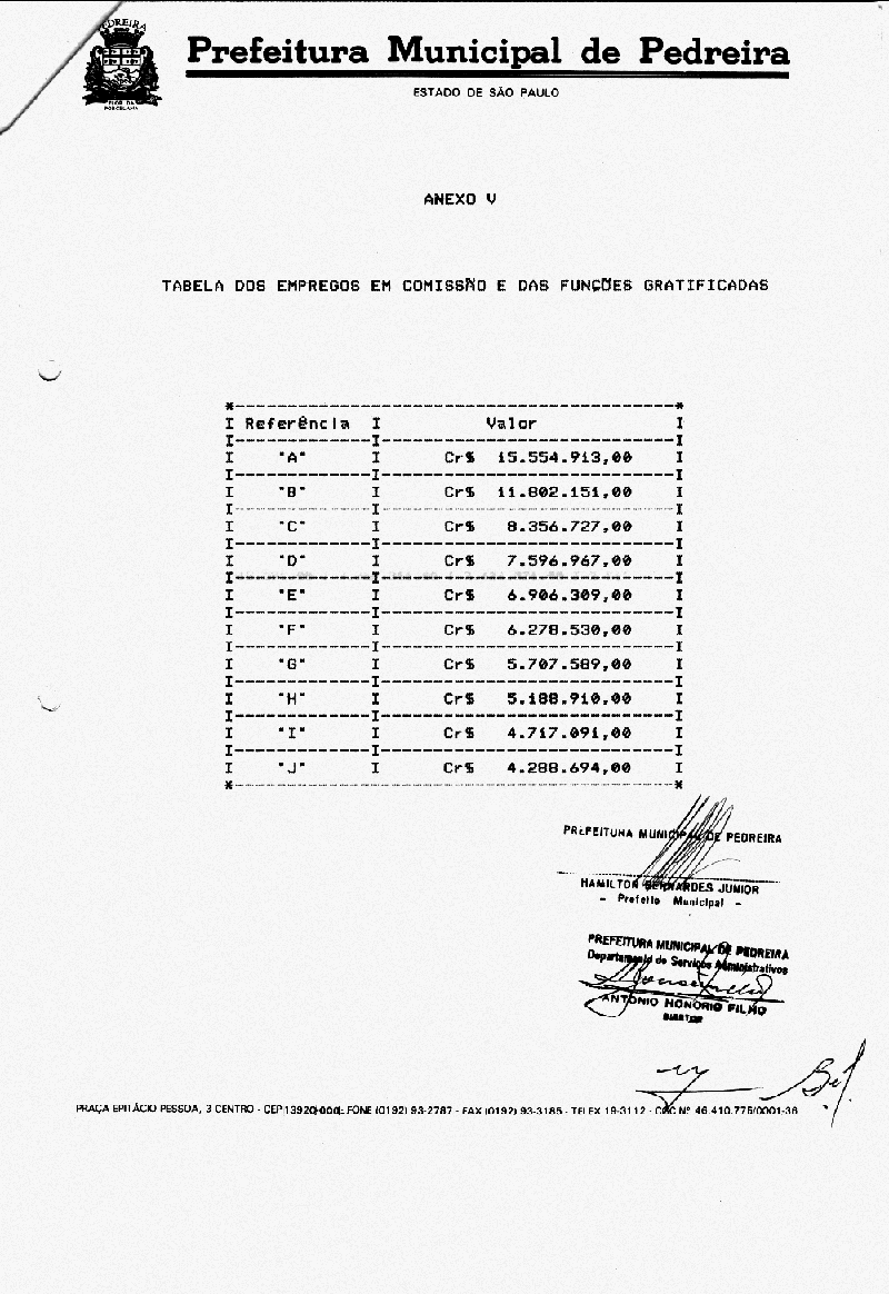 Ementa: Altera a Tabela de Referência anexa a Lei Municipal n° 1586, de 29 de janeiro de 1993