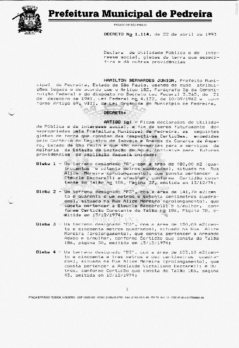 Ementa: Declara de Utilidade Pública e de Interesse Social, gleba de terra que especifica e dá outras providências