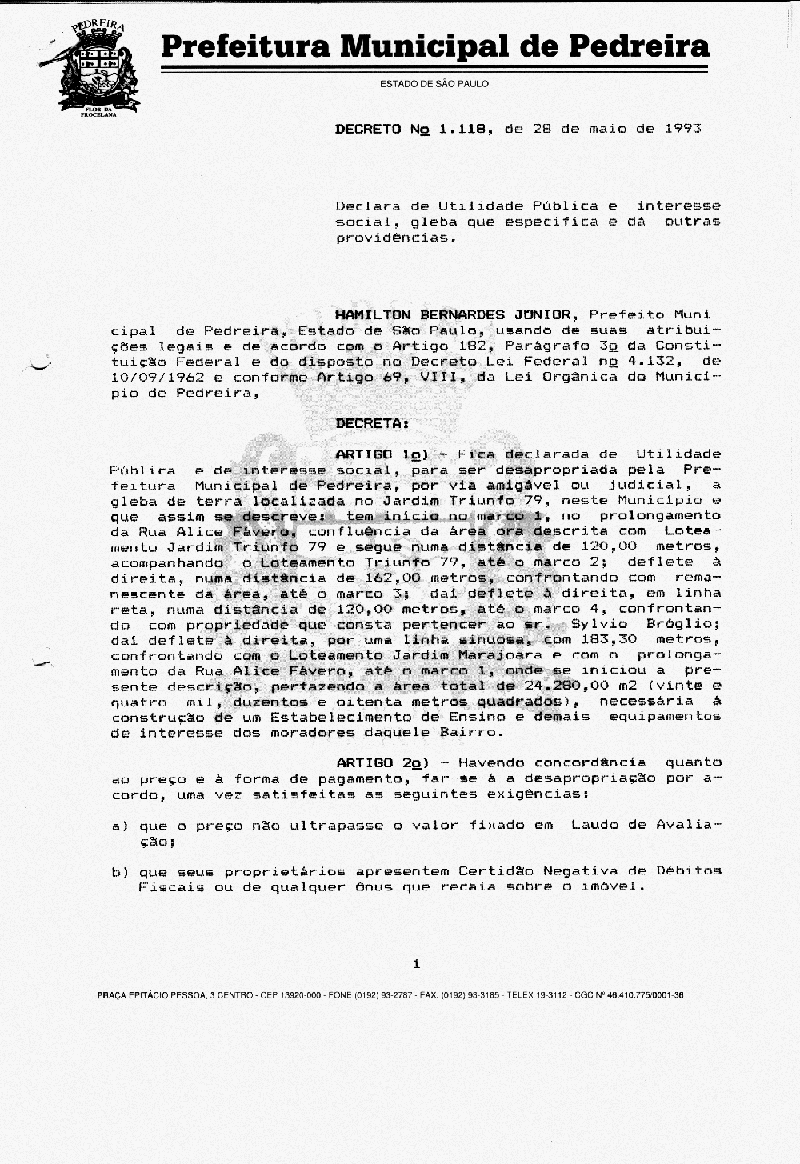 Ementa: Declara de Utilidade Pública e interesse social, gleba que especifica e dá outras providências