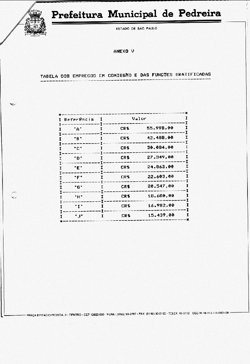 Ementa: Altera a Tabela de Referência anexa a Lei Municipal n° 1586 de 28/01/93