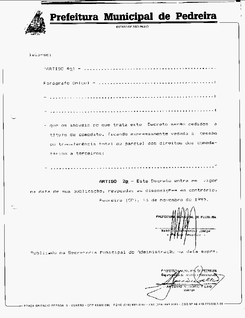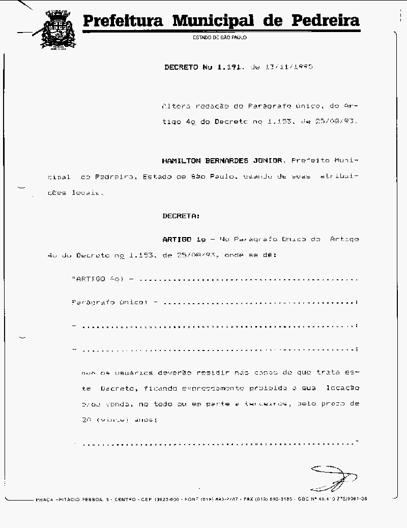 Ementa: Altera redação do Parágrafo único, do Artigo 4° do decreto n° 1153, de 25/08/1993