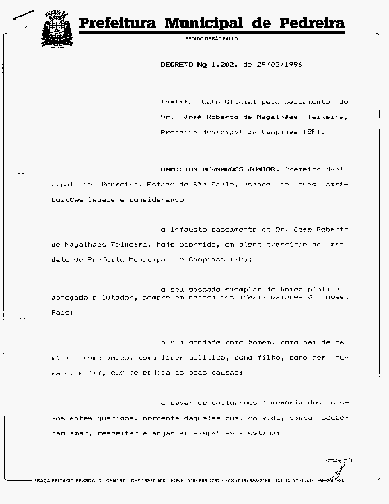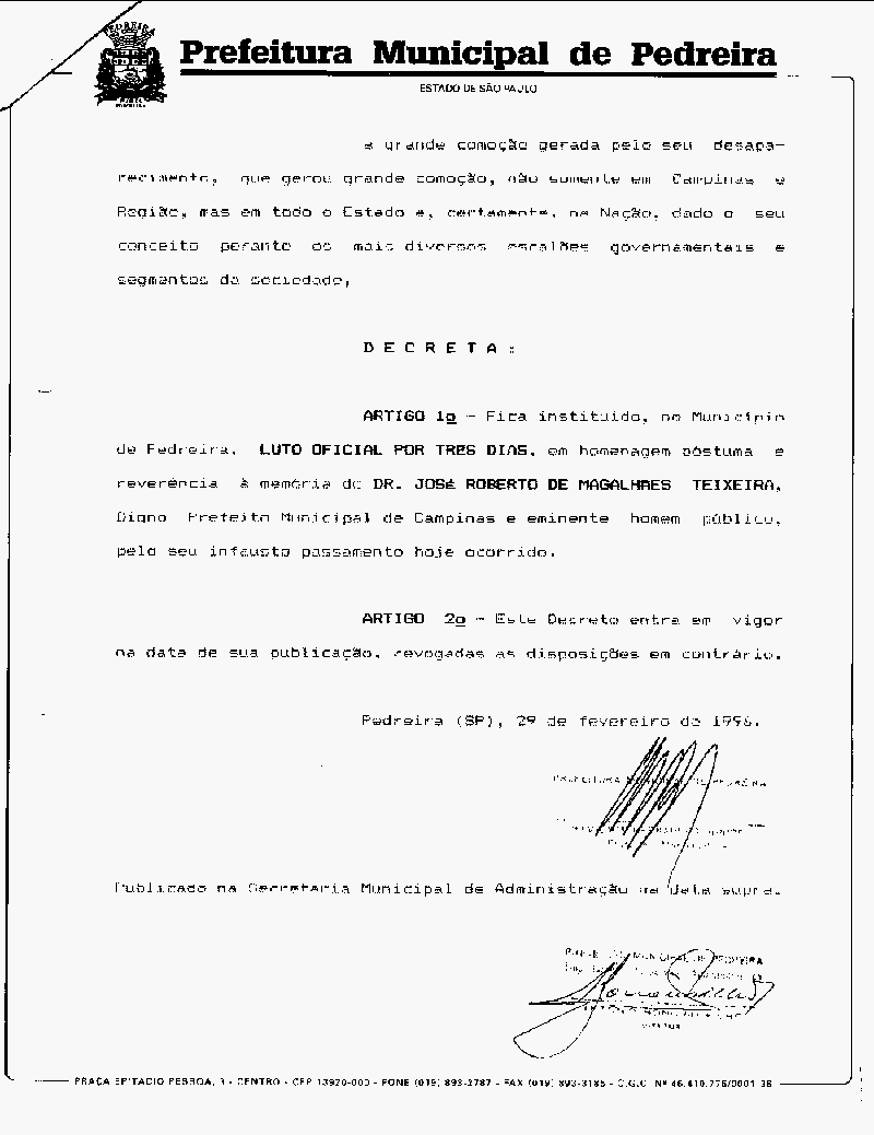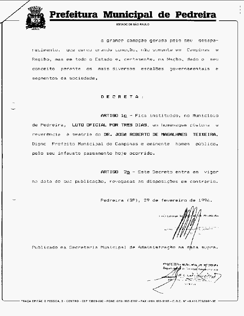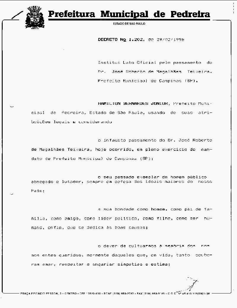 Ementa: Institui Luto Oficial pelo passamento do Dr. José Roberto Magalhães Teixeira