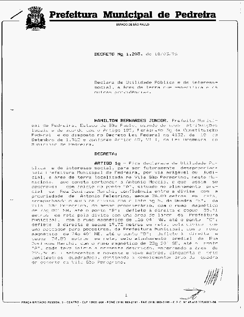 Ementa: Declara de Utilidade Pública, a área de terra que especifica e dá outras referências