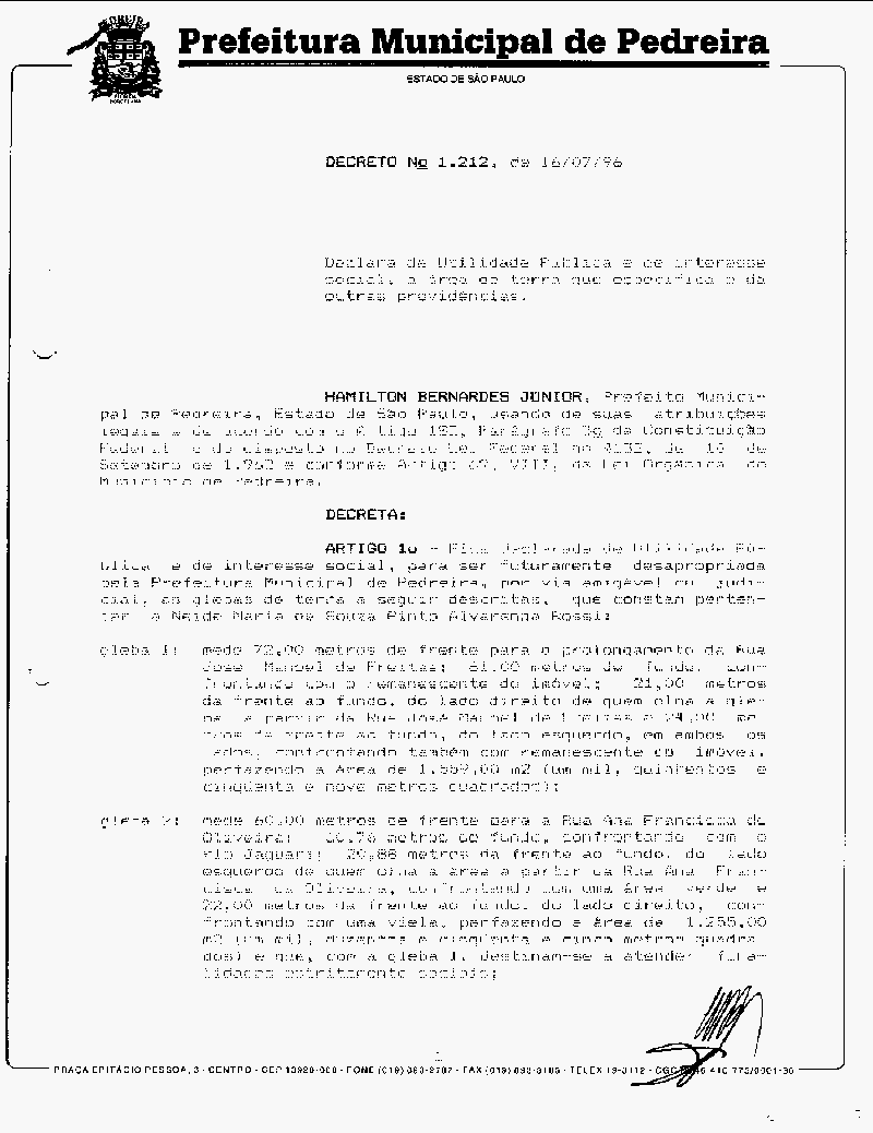 Ementa: Declara de Utilidade Pública, a área de terra que especifica e dá outras informações