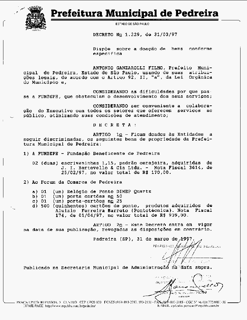 Ementa: Dispõe sobre a doação de bens conforme especifica