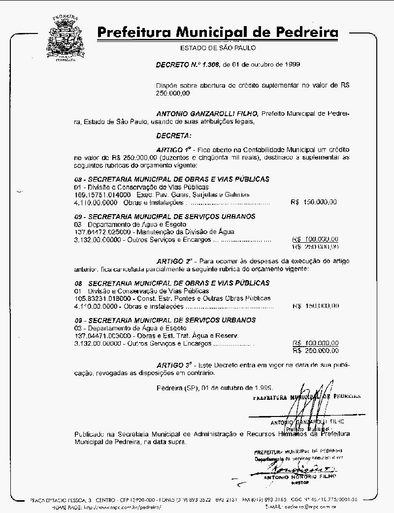 Decreto - N° 1308 de 01/10/1999