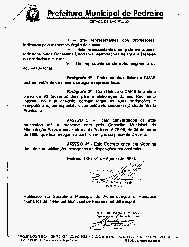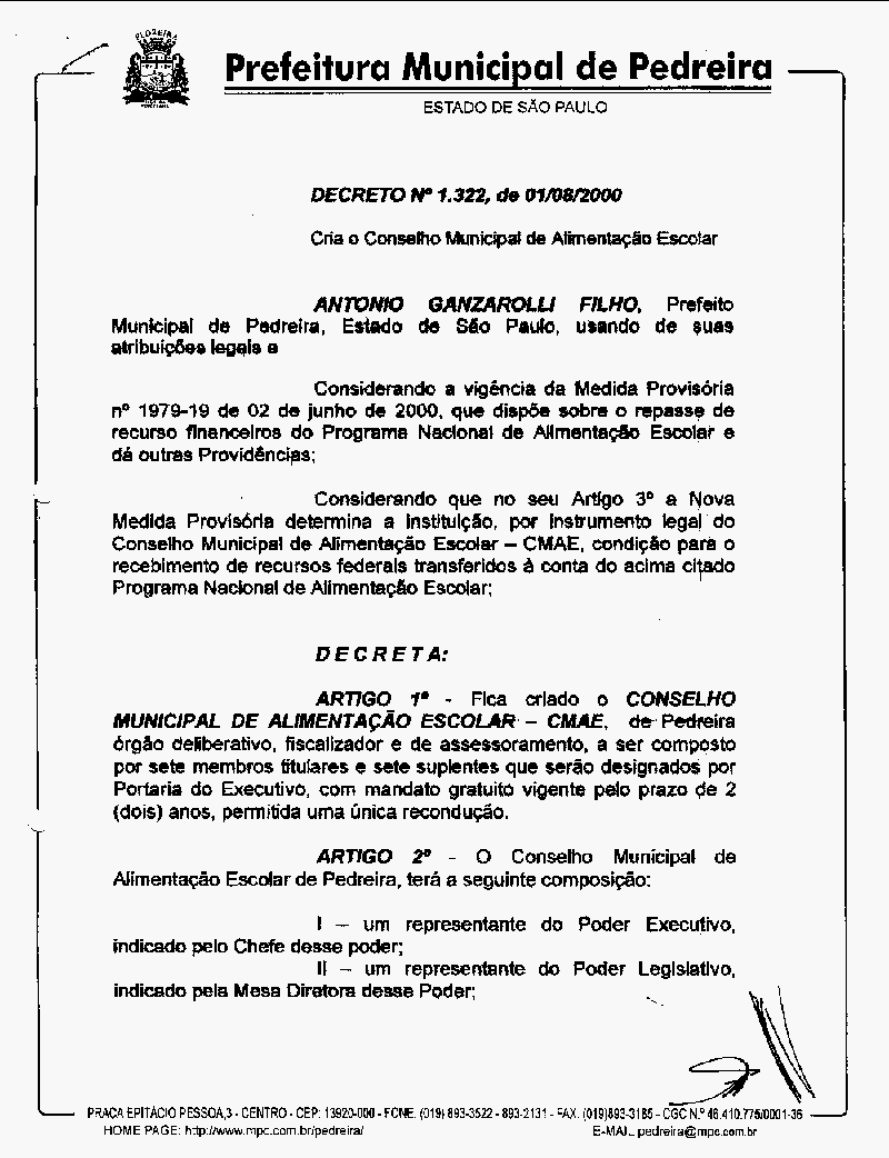 Ementa: Cria o conselho Municipal de Alimentação Escolar