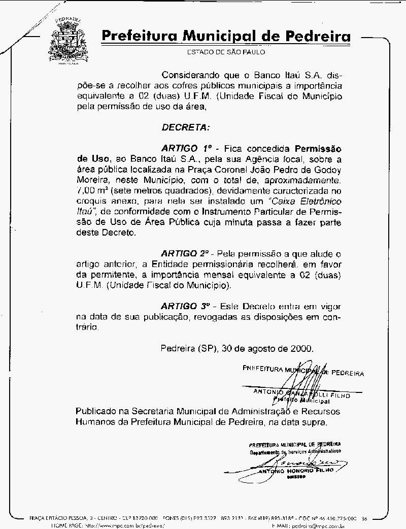 Ementa: Autoriza Permissão de Uso de Bem público, conforme especifica