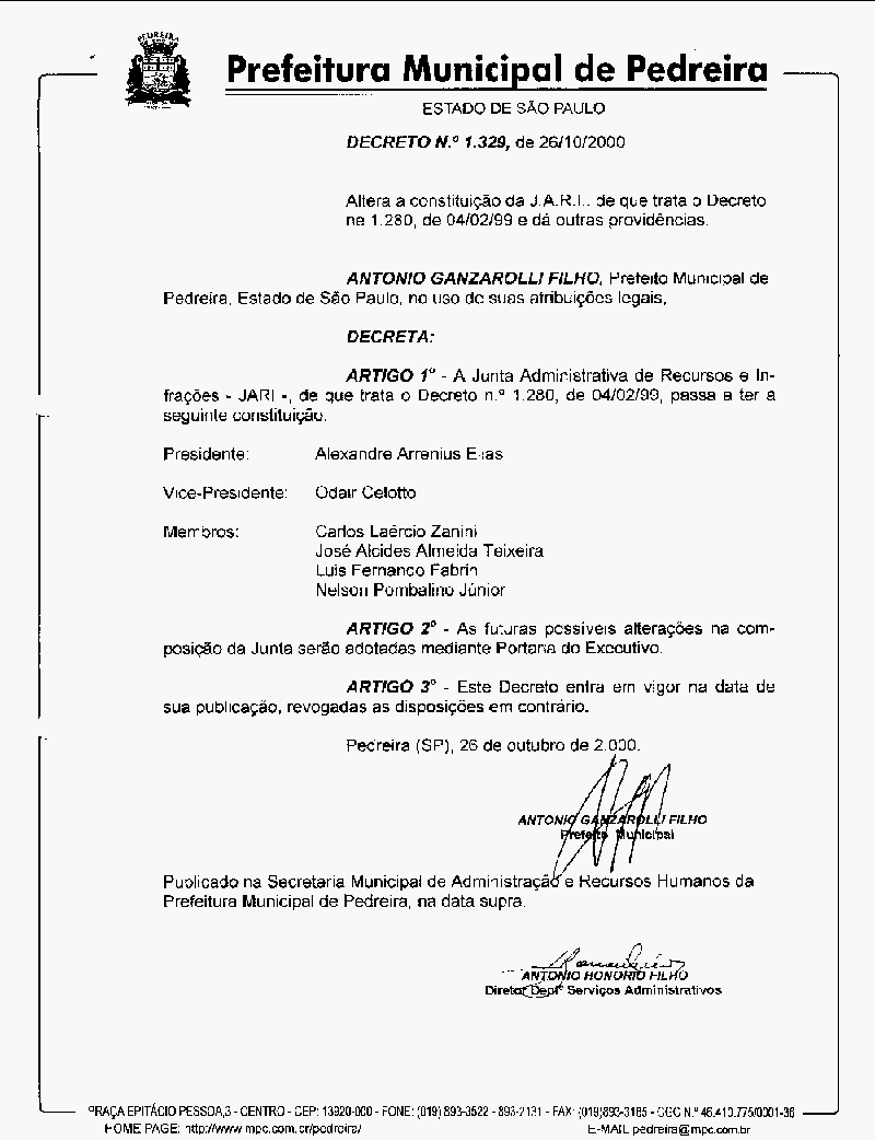 Ementa: Altera a constituição da J.A.R.I. de que trata o Decreto n° 1280, de 04/02/1999 e dá outras providências