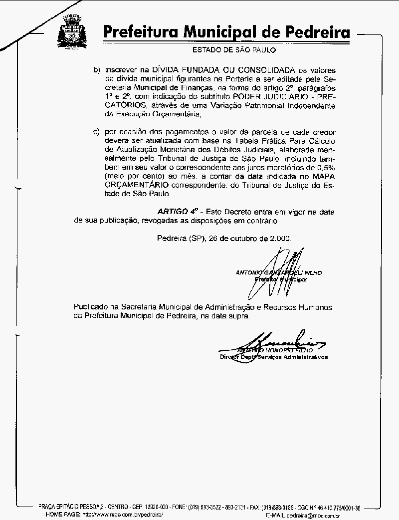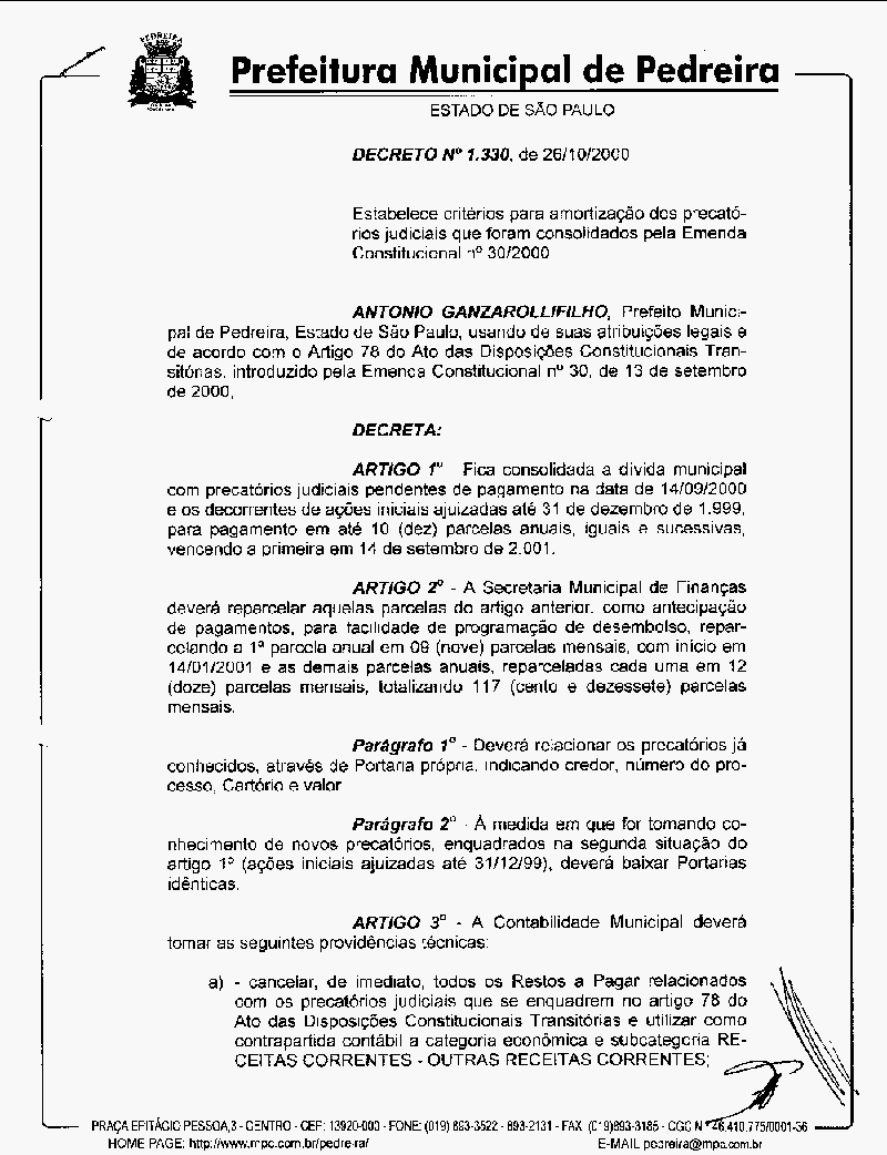 Ementa: estabelece critérios para amortização dos precatórios judiciais que foram consolidados pela emenda Constitucional n° 30/2000