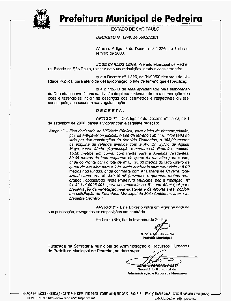 Ementa: Altera o Artigo 1° do Decreto n° 1326, de 01 de setembro de 2000