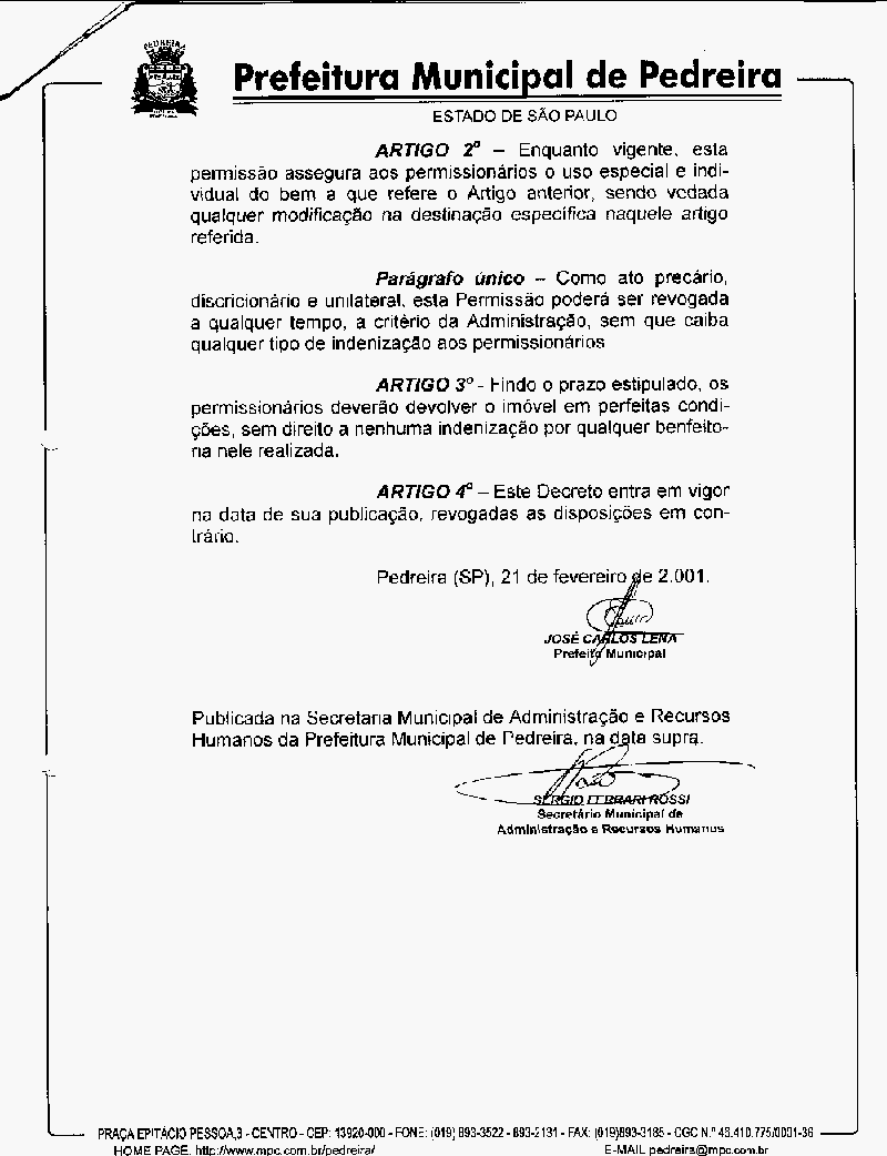 Ementa: Concede permissão de uso do bem que especifica à Câmara Municipal de Dirigentes Lojistas de pedreira e dá outras providências