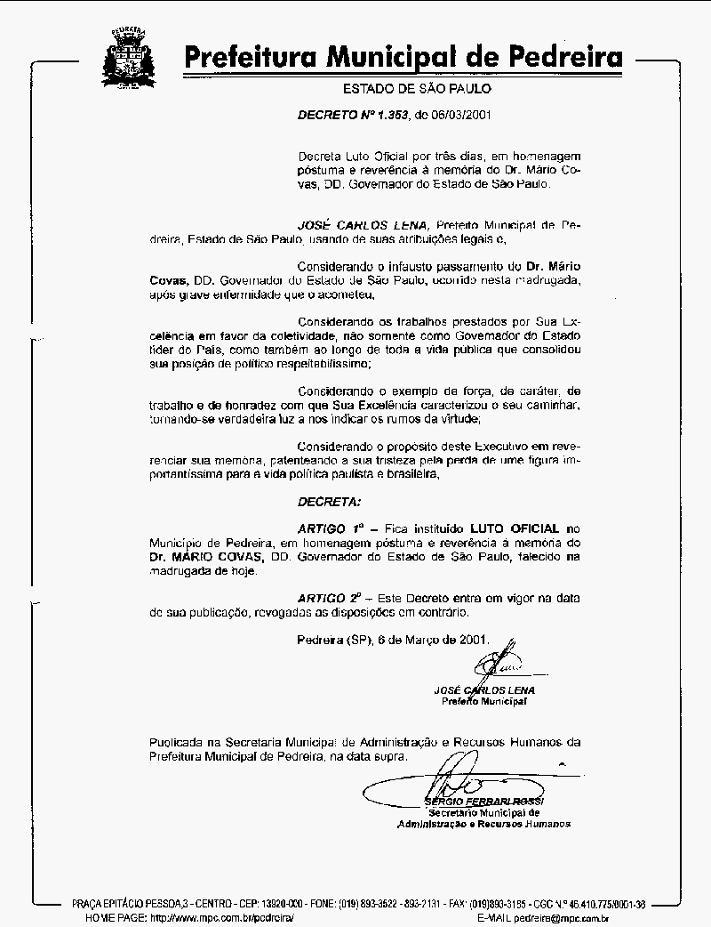 Ementa: Decreto Luto Oficial.