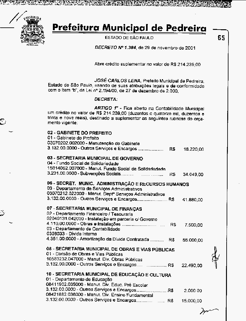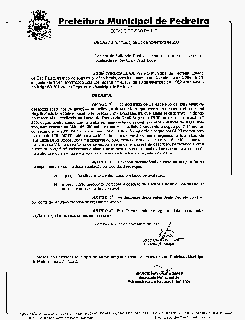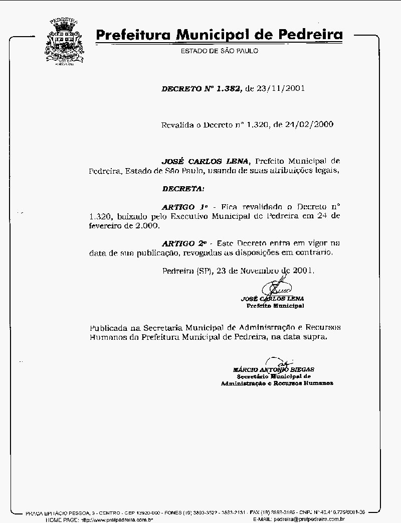 Ementa: Revalida o Decreto n° 1320, de 21/02/2000