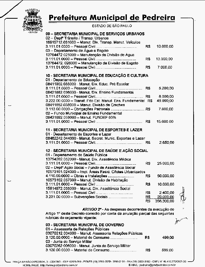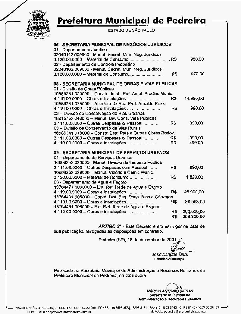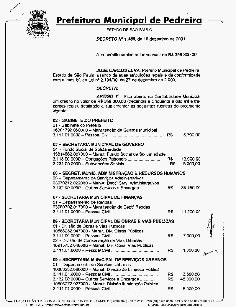 Ementa: Abre crédito suplementar no valor de R$ 358.300,00