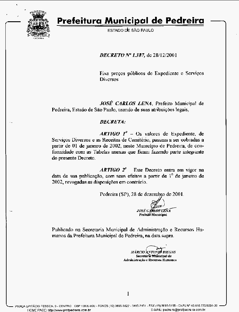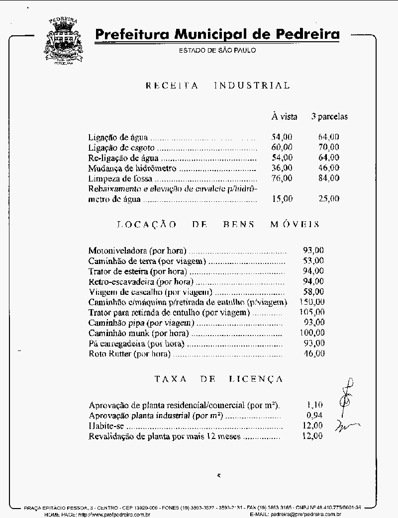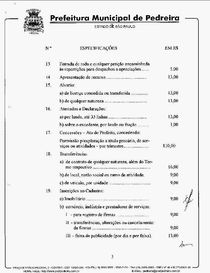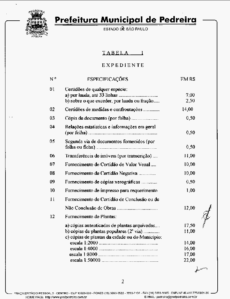 Ementa: Fixa preços públicos de Expediente e Serviços Diversos
