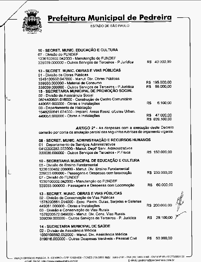 Ementa: Abre crédito suplementar no valor de R$ 839.100,00