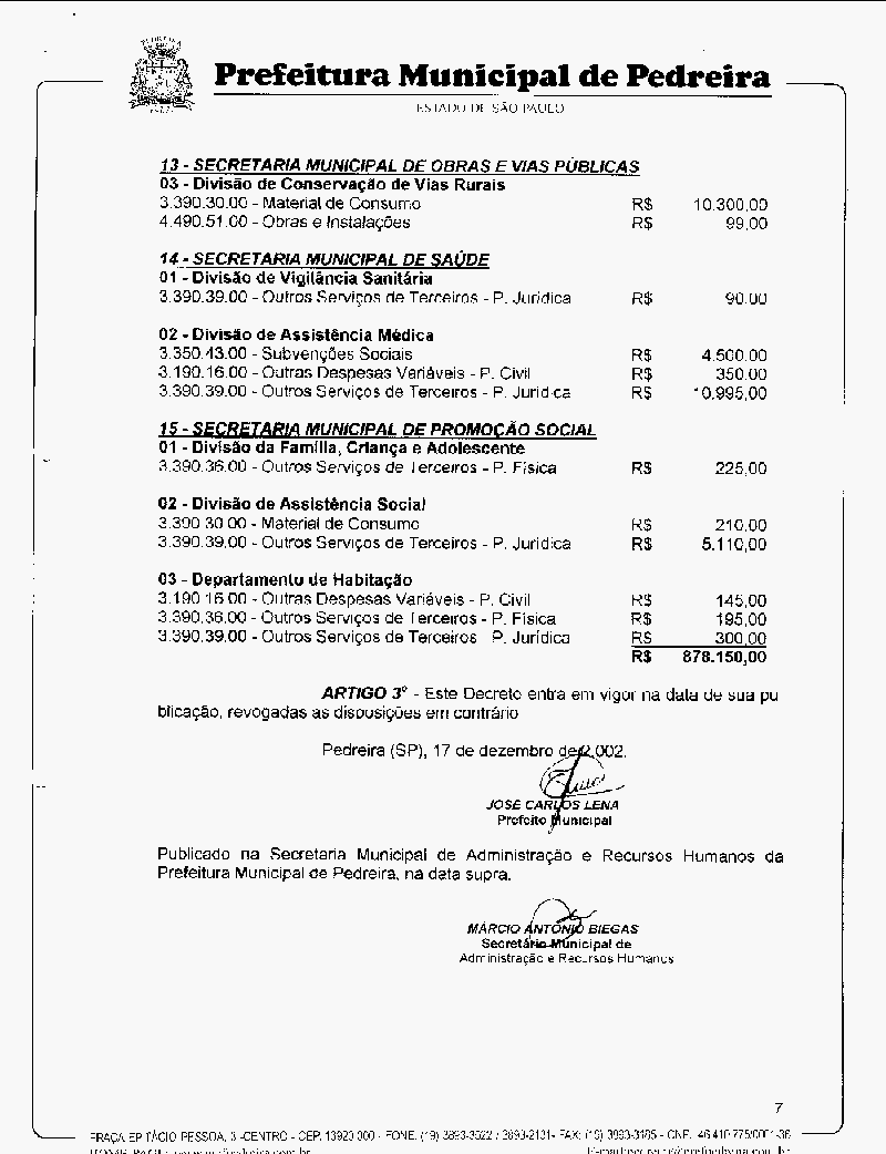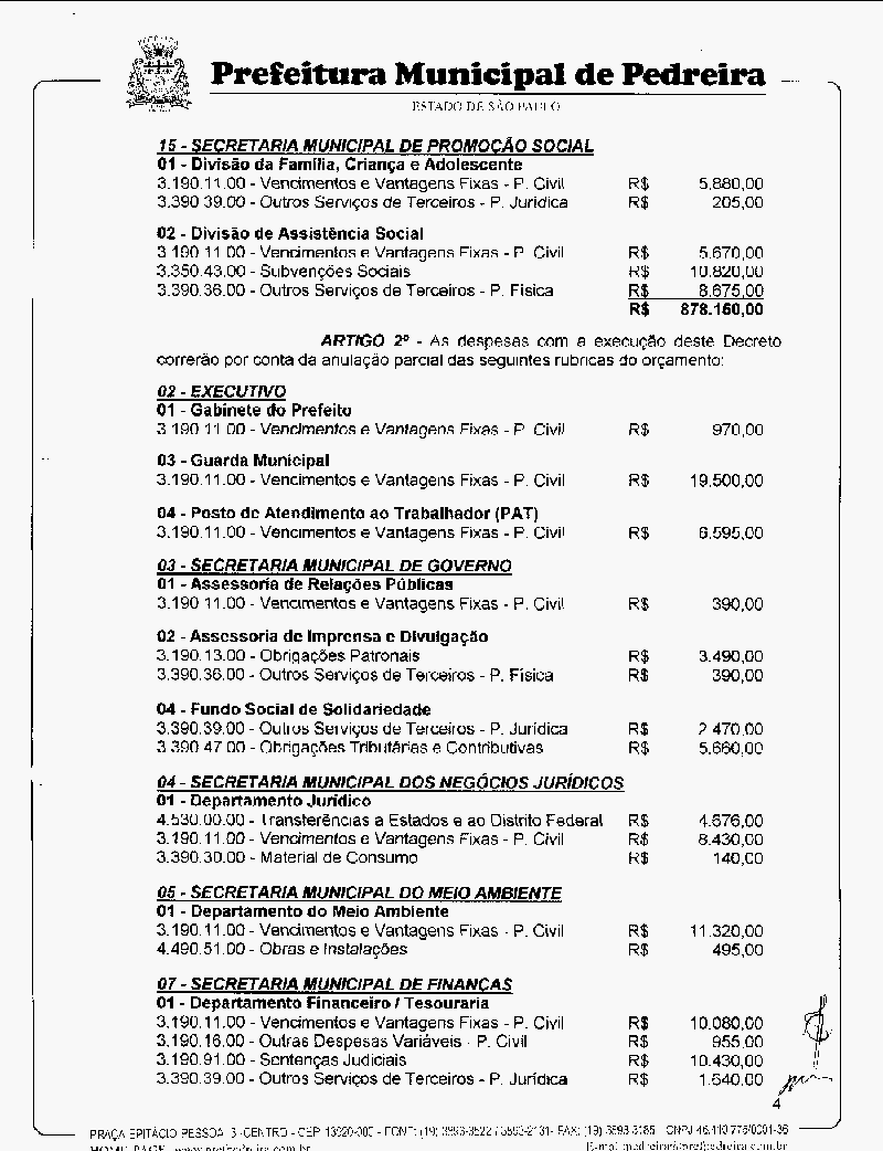 Ementa: Abre crédito suplementar no valor de R$ 878.150,00