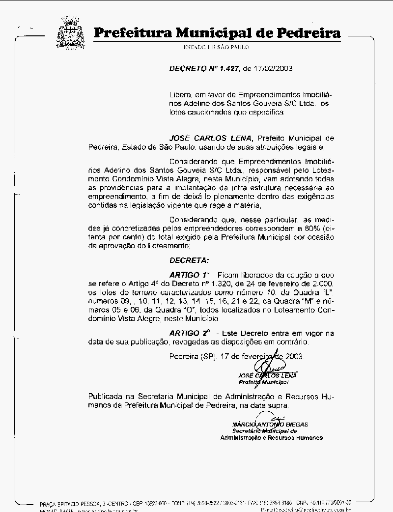 Ementa: Libera em favor de Empreendimentos Imobiliários Adelino dos Santos Gouveia S/C Ltda.