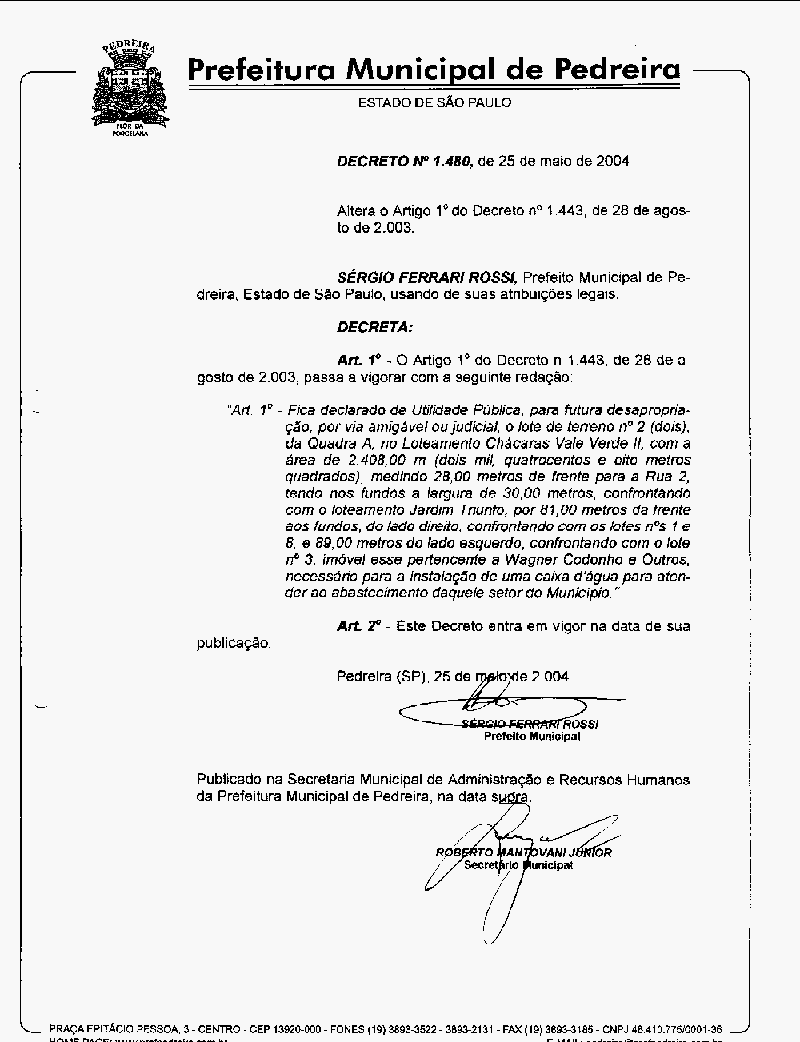 Ementa: Altera o Artigo 1° do Decreto n° 1.443, de 28 de agosto de 2003