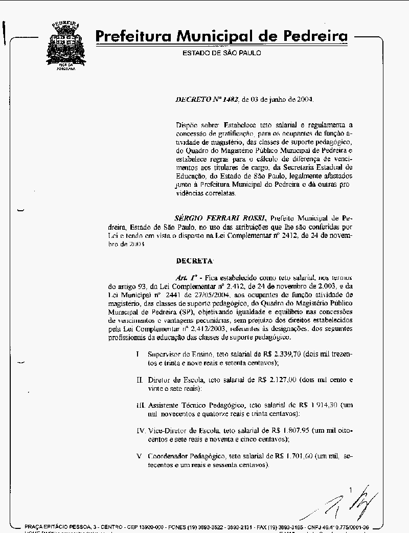 Ementa: Dispõe sobre Estabelece teto salarial e regulamenta a concessão de gratificação, para os ocupantes de função atividade de magistério