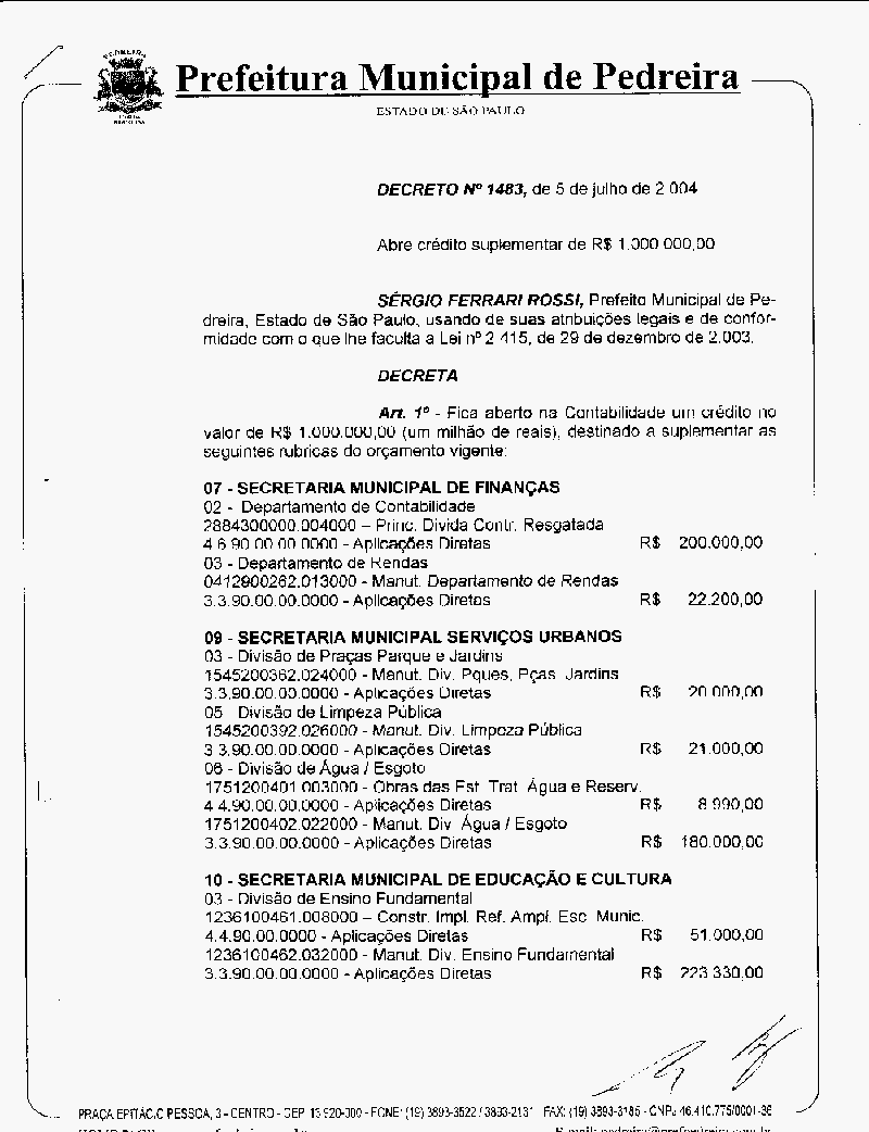 Decreto - N° 1483 de 05/07/2004