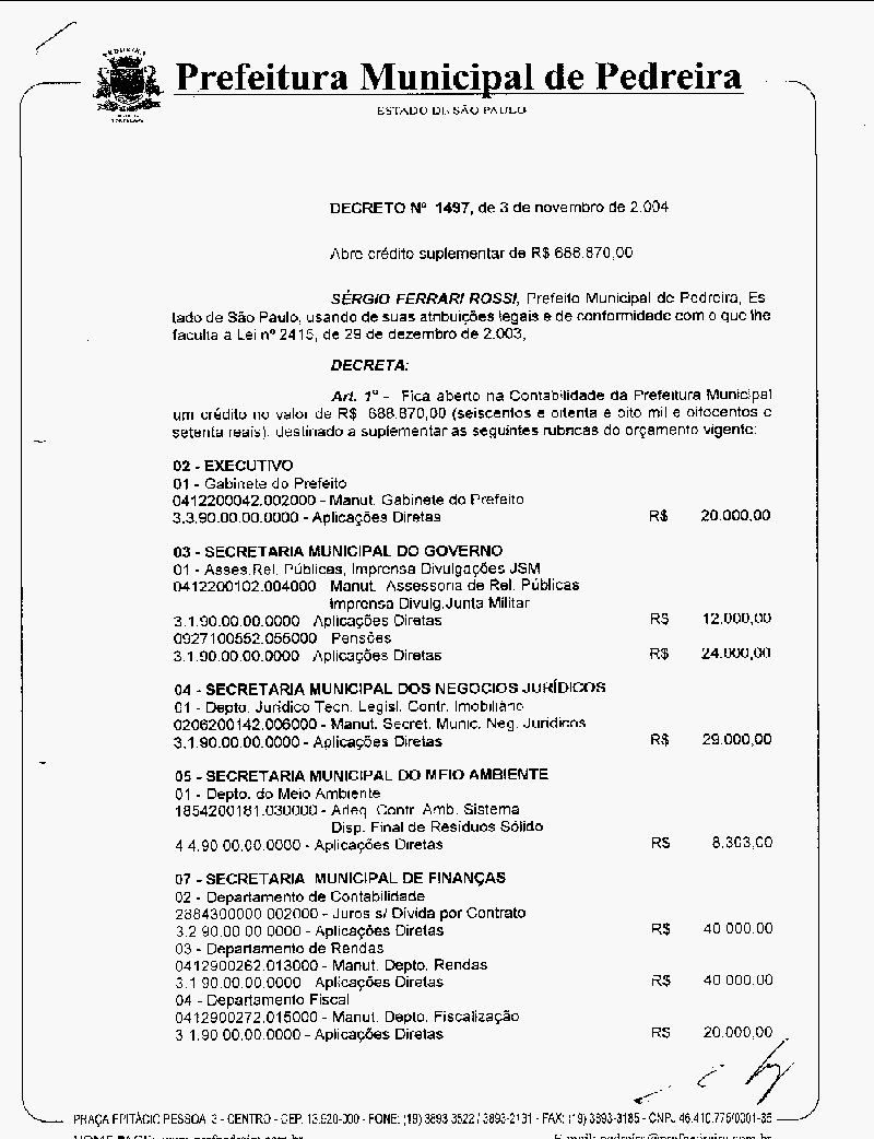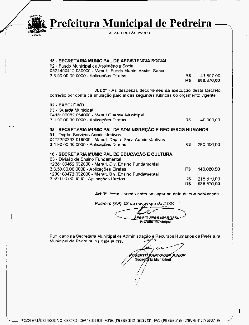 Ementa: Abre crédito suplementar no valor de R$ 688.870,00