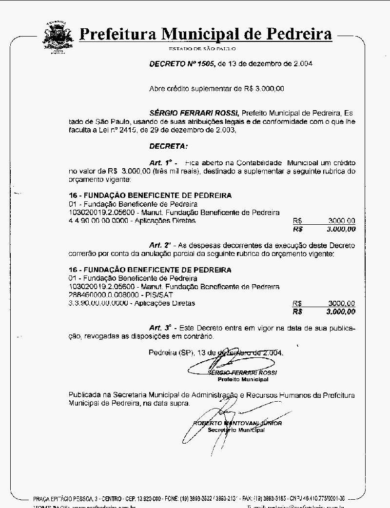 Ementa: Abre crédito suplementar no valor de R$ 3.000,00