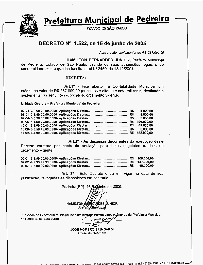 Ementa: Abre crédito suplementar no valor de R$ 287.000,00