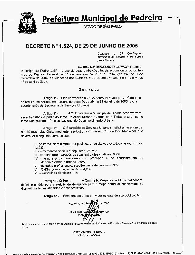 Ementa: Convoca a 2° Conferência Municipal da Cidade e dá outras providências