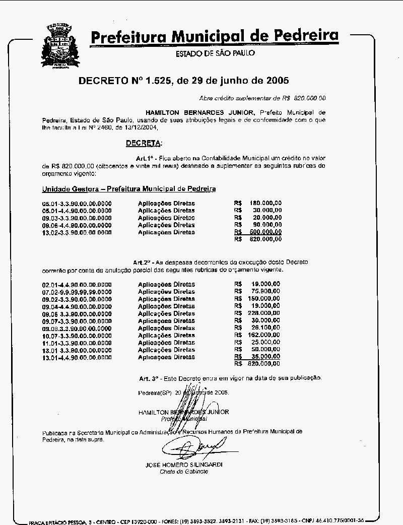 Decreto - N° 1525 de 29/06/2005