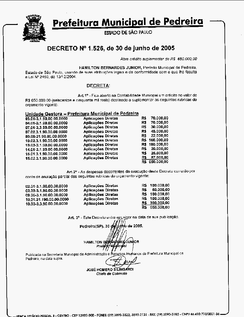 Ementa: Abre crédito suplementar no valor de R$ 650.000,00