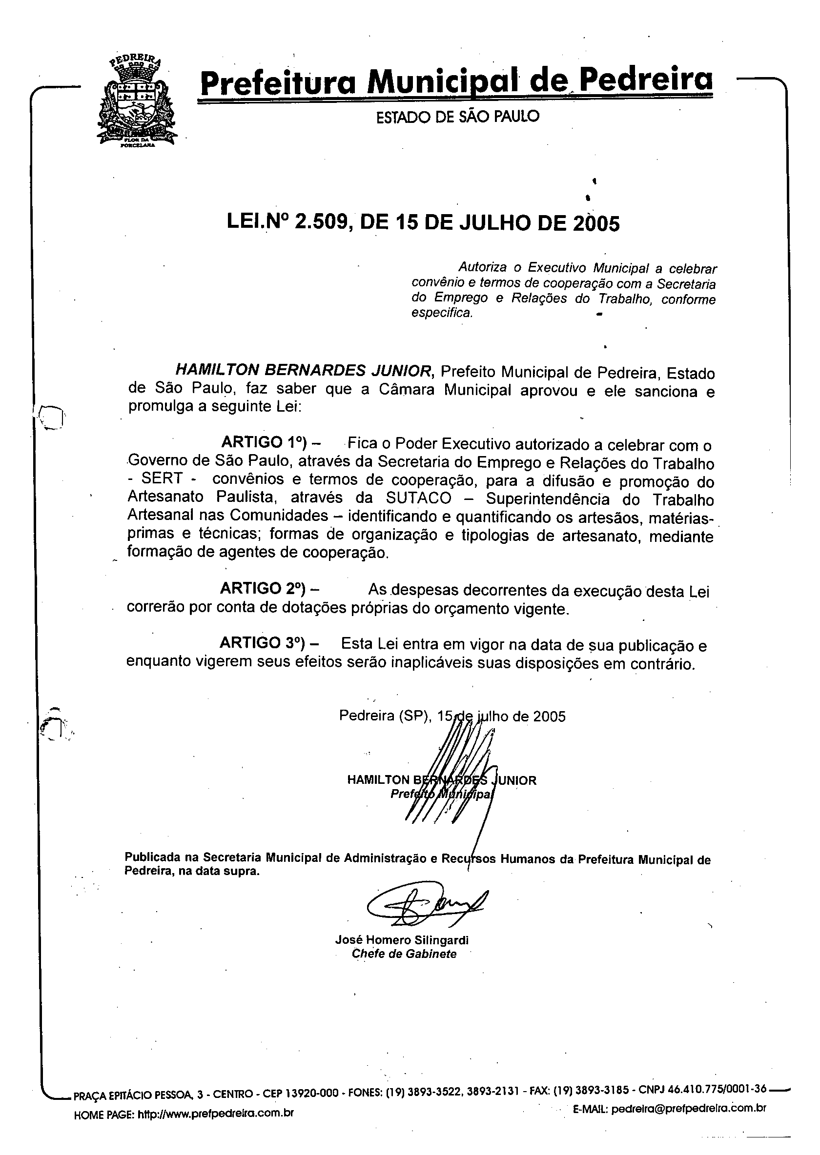 Ementa: Autoriza o Executivo Municipal a celebrar convênio e termos de cooperação com a Secretaria do Emprego e Relações do Trabalho, conforme especifica.