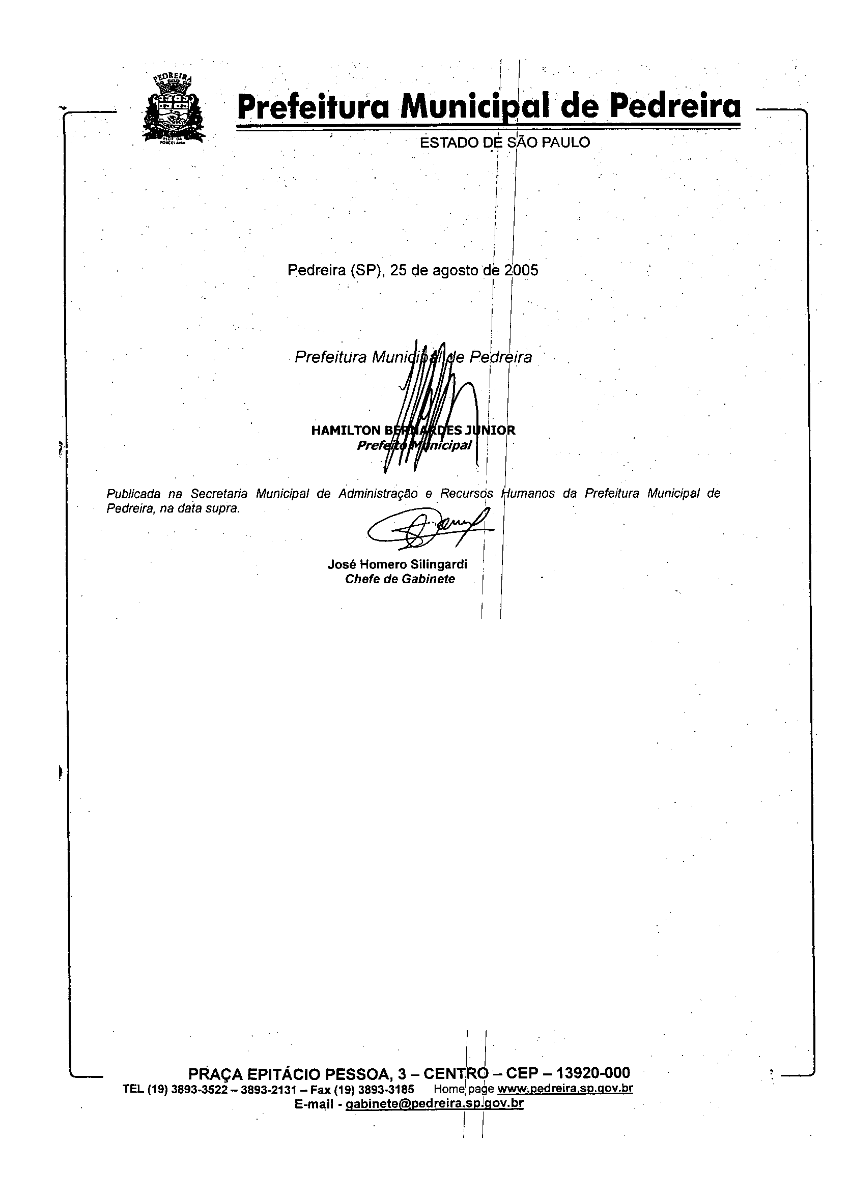 Lei Municipal - N° 2513 de 25/08/2005