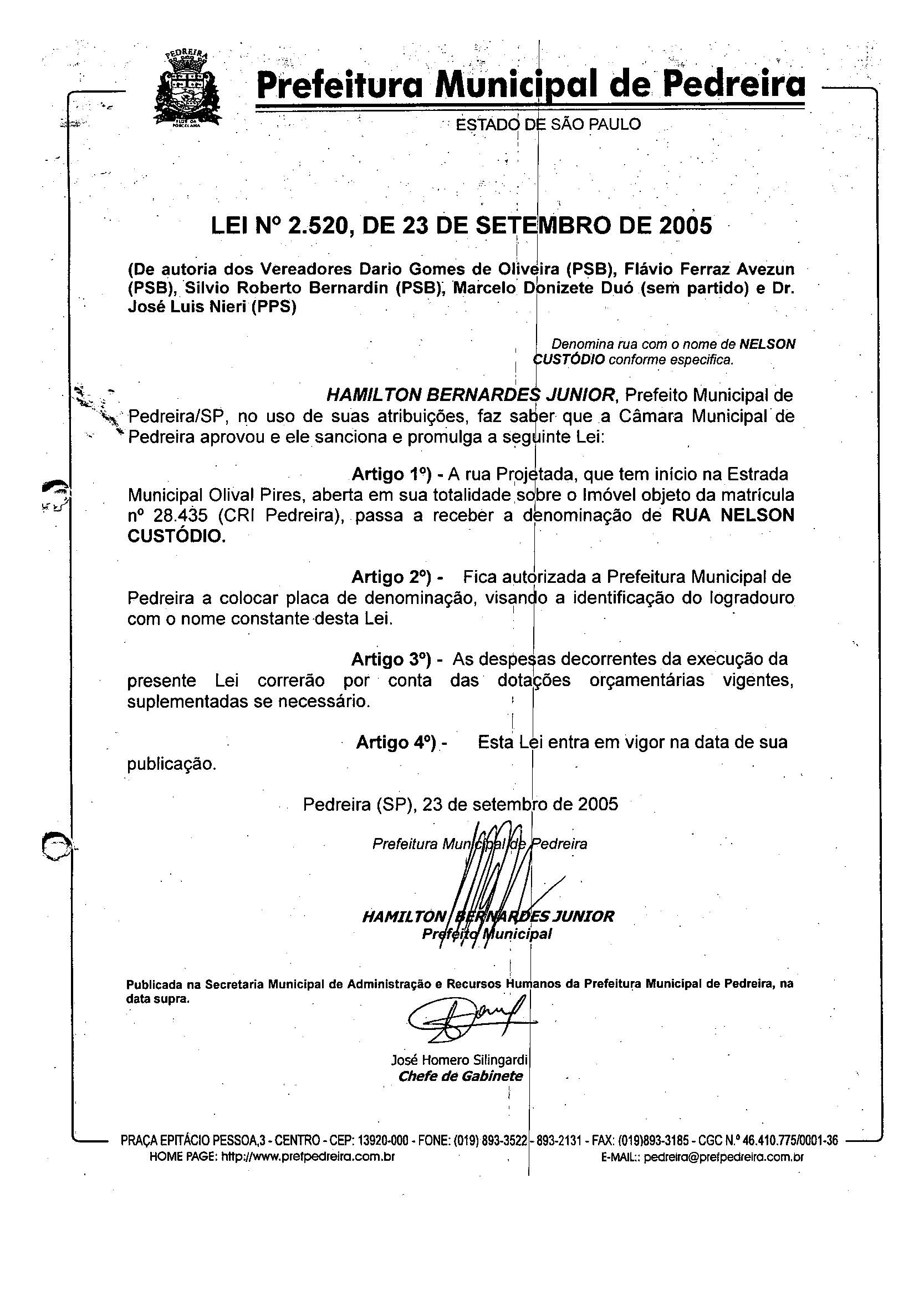 Ementa: Denomina rua com o nome de NELSON CUSTÓDIO conforme especifica.