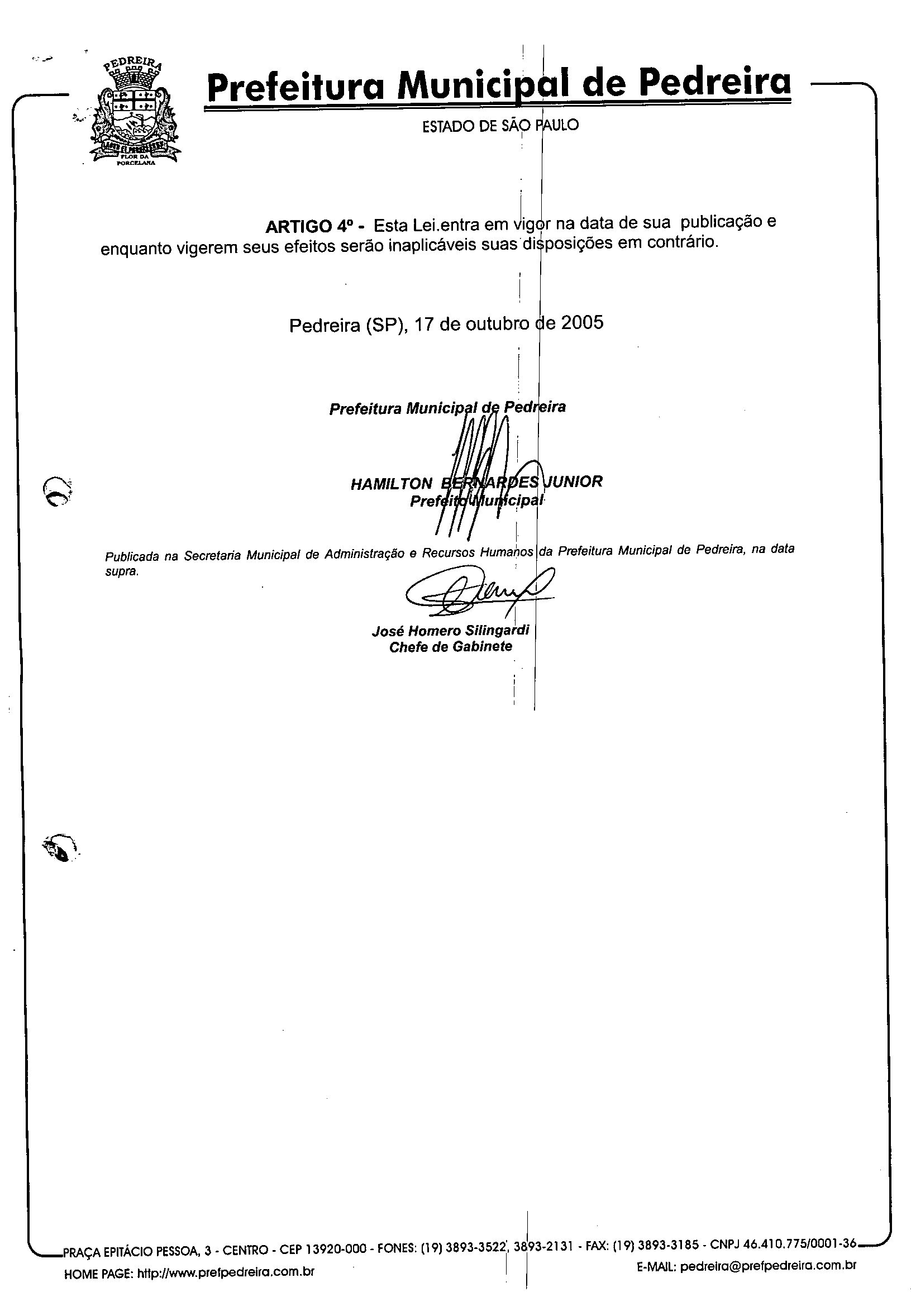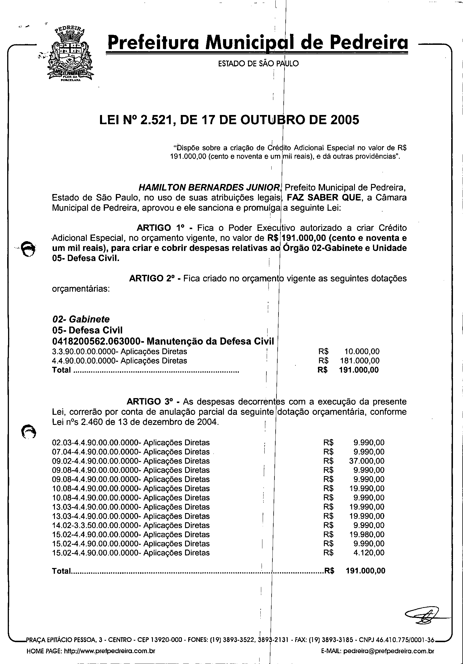 Lei Municipal - N° 2521 de 17/10/2005