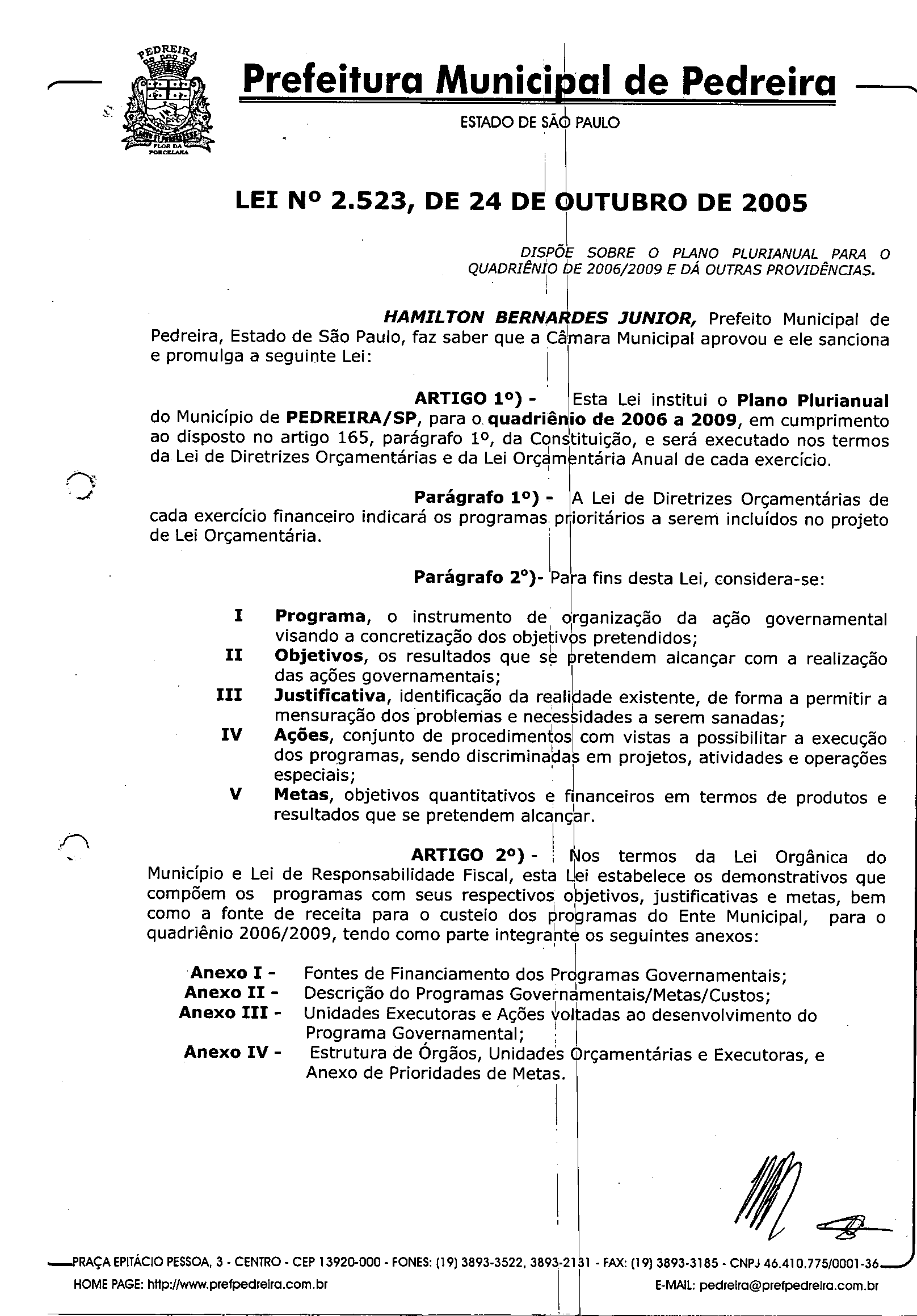 Lei Municipal - N° 2523 de 24/10/2005